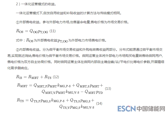 一體化運(yùn)營(yíng)模式成本包括投資建設(shè)成本、運(yùn)維成本、外購(gòu)電成本以及自主申報(bào)的容量成本,收益包括自發(fā)自用收益、外部售電收益、內(nèi)部售電收益、“過(guò)網(wǎng)費(fèi)”收益、輔助服務(wù)補(bǔ)償收益和補(bǔ)貼收益。
