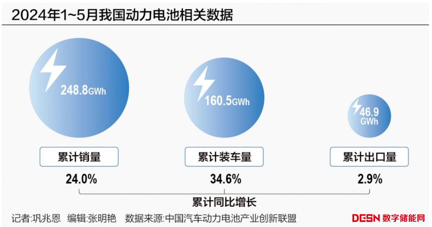 6月14日,中國汽車動力電池產(chǎn)業(yè)創(chuàng)新聯(lián)盟發(fā)布數(shù)據(jù)顯示,今年5月,我國動力電池銷量為56.2GWh,環(huán)比增長12.9%,同比增長12.9%;裝車量達(dá)39.9GWh,同比增長41.2%,環(huán)比增長12.6%;出口量為9.8GWh,環(huán)比增長8.9%。