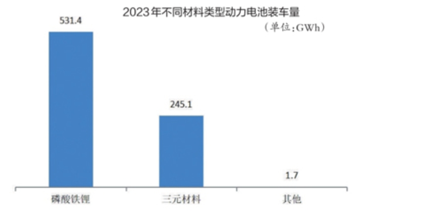 2023年不同材料類型動(dòng)力電池裝車量占比