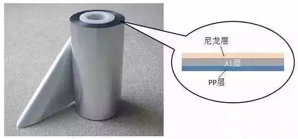鋁塑復(fù)合膜外觀及內(nèi)部結(jié)構(gòu)示意圖