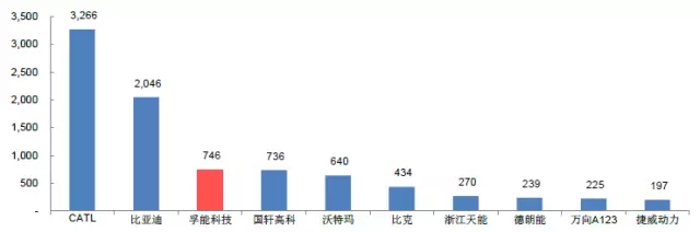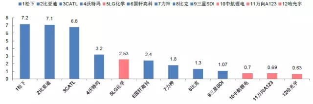 2016年全球動(dòng)力電池廠商出貨量排名(GWh)