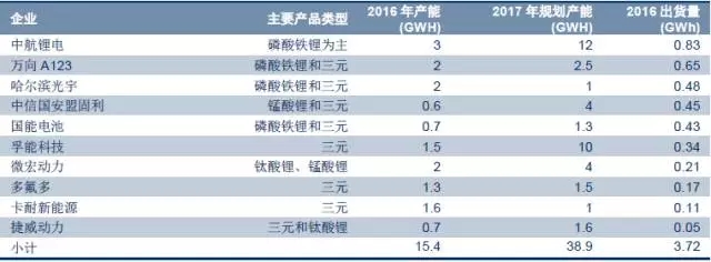 國(guó)內(nèi)部分軟包裝動(dòng)力電池企業(yè)產(chǎn)能及出貨量