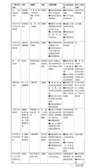 技術(shù)和材料的進(jìn)步,讓國內(nèi)外越來越多的機(jī)構(gòu)和企業(yè)看到了固態(tài)電池的光明前景,紛紛投入到固態(tài)電池的研發(fā)和生產(chǎn)中來,國外在這一領(lǐng)域起步較早并取得了一定的成果,大致情況如下: