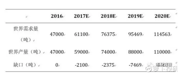 隨著鋰電、電池材料行業(yè)的迅速增長,電池材料對氫氧化鋰的需求不斷增長。2016 年中國氫氧化鋰在電池領(lǐng)域的消費(fèi)占比達(dá)74%。在高鎳三元材料電池需求上升趨勢下,氫氧化鋰需求更趨旺盛,預(yù)計(jì)2020年達(dá)到114563噸,但世界產(chǎn)量估計(jì)值卻低于需求量,預(yù)計(jì)缺口在2020年達(dá)到4563噸。
