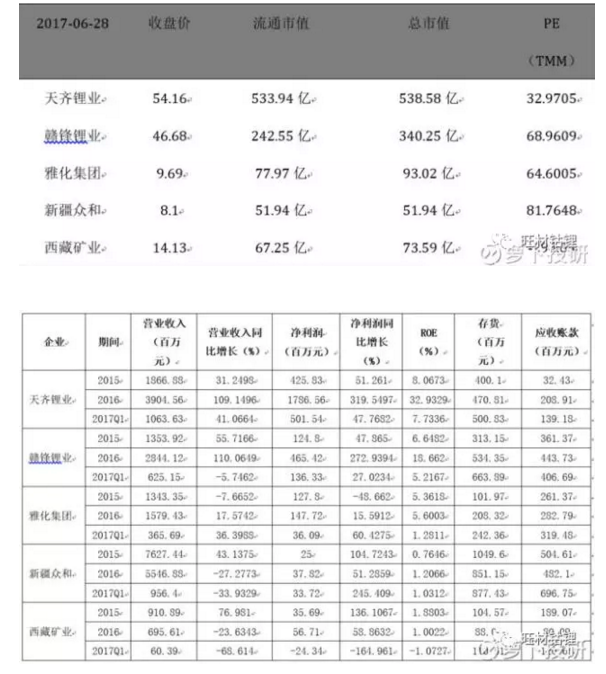 上市公司氫氧化鋰供給(噸),數(shù)據(jù)來源:公司公告,蘿卜投研(通聯(lián)數(shù)據(jù)) 上市公司對應(yīng)的財(cái)務(wù)數(shù)據(jù)如下: