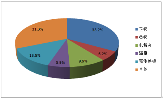 在鋰電池成本結(jié)構(gòu)方面,正極材料成本約占總成本的 33.2% ,是鋰電池最主要的組占成部分,隔膜、負(fù)極、電解液和殼體蓋板成本大約占 5.9% 、6.2% 、9.9%和13.5% 。