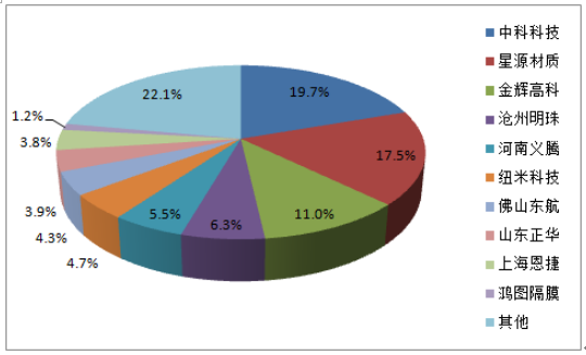 全球來看,鋰電隔膜市場集中度很高,前四大公司市場占有率合計超過 70%,且高端產(chǎn)品其市場占有率更高。我國生產(chǎn)企業(yè)緊隨其后,目前已形成 以星源材質(zhì)為代表的干法單拉隔膜,以中科科技為代表的干法雙拉隔膜和以金輝高科為代表的濕法隔膜三大制備技術(shù)體系,目前三家企業(yè)在國內(nèi)市場占有率合計為 48.2%,市場集中度有進(jìn)一步提升的空間。