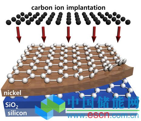 Kim的方法基于離子注入技術--一種和微電子器件相兼容的技術,通常用來給半導體材料中摻入雜質。在離子注入過程中,碳離子被電場加速,在500攝氏度的溫度下轟擊鍍有鎳層和氧化硅層的硅襯底。 鎳層,因其高的碳溶解度,被用來作為合成石墨烯的催化劑。隨后,整個樣品經過高溫激活退火處理(約600到900攝氏度)使碳原子之間形成蜂窩狀晶格結構,也就是石墨烯的特征微觀結構。