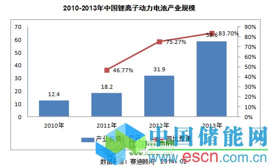 中國(guó)電池雜志-中國(guó)電池網(wǎng)戰(zhàn)略合作伙伴——賽迪顧問統(tǒng)計(jì)數(shù)據(jù)顯示,2013年中國(guó)鋰離子動(dòng)力電池整體產(chǎn)業(yè)規(guī)模達(dá)到58.6億元,比2012年的31.9億元增長(zhǎng)83.70%,主要得益于電動(dòng)自行車用動(dòng)力電池的增長(zhǎng)。但是隨著新一輪的新能源示范推廣補(bǔ)貼辦法的出臺(tái),未來動(dòng)力電池產(chǎn)業(yè)市場(chǎng)需求將更多的來自于電動(dòng)汽車對(duì)產(chǎn)業(yè)的拉動(dòng)。