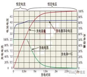 給鋰離子電池充電的推薦方法是,向電池提供一個±1%限壓的恒定電流,直到電池充滿電,然后停止充電。用來決定電池何時充滿電的方法包括:給總的充電時間定時、監(jiān)視充電電流或兼用這兩種方法。第一種方法采用限壓恒定電流,變化范圍從C/2到1C,持續(xù)2.5至3小時,使電池達(dá)到100%充電。也可以使用較低的充電電流,但是將需要更長時間。第二種方法與第一種方法類似,只是需要監(jiān)視充電電流。隨著電池的充電,電壓上升,這與采用第一種方法時完全相同。電池電壓達(dá)到編程限壓值(也稱為浮動電壓)時,充電電流開始下降。電流一開始下降時,電池約充電至容量的50%至60%。浮動電壓繼續(xù)提供,直到充電電流降至足夠低的水平(C/10至C/20),這時電池約充電至容量的92%至99%,充電周期終止。目前,要為標(biāo)準(zhǔn)鋰離子電池快速充電(不到1小時)至容量的100%,還沒有一種安全的方法。