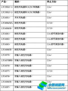 C/10終止大約僅將電池充電至其容量的92%,但是將提高周期壽命。C/5終止可以將周期壽命延長一倍,但是電池充電量進(jìn)一步降低至約為容量的85%。圖5顯示了凌力爾特公司的幾款充電器,分別采用C/10(10%電流門限)或C/x(可調(diào)電流門限)充電終止模式。