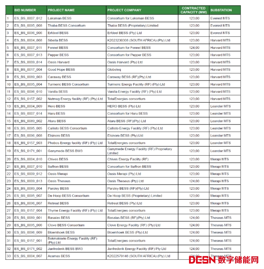 中國儲(chǔ)能網(wǎng)訊:據(jù)外媒報(bào)道,日前,南非電力和能源部對(duì)外公布了電池儲(chǔ)能獨(dú)立發(fā)電商采購計(jì)劃(BESIPPPP)第三輪競標(biāo)名單。