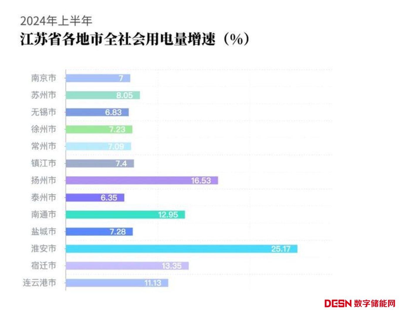 中國儲能網(wǎng)訊:用電量素來有經(jīng)濟運行“晴雨表”“風(fēng)向標(biāo)”之稱。近日,江蘇13市半年用電排行榜近日揭曉:數(shù)據(jù)顯示,1-6月,淮安市全社會用電量累計154.5億千瓦時,同比增長25.17%,增速排名全省第一;全市超八成縣區(qū)全社會用電量實現(xiàn)兩位數(shù)增長,增速最高達(dá)50.22%;新能源發(fā)電量達(dá)47.2億千瓦時,同比增長19.4%……