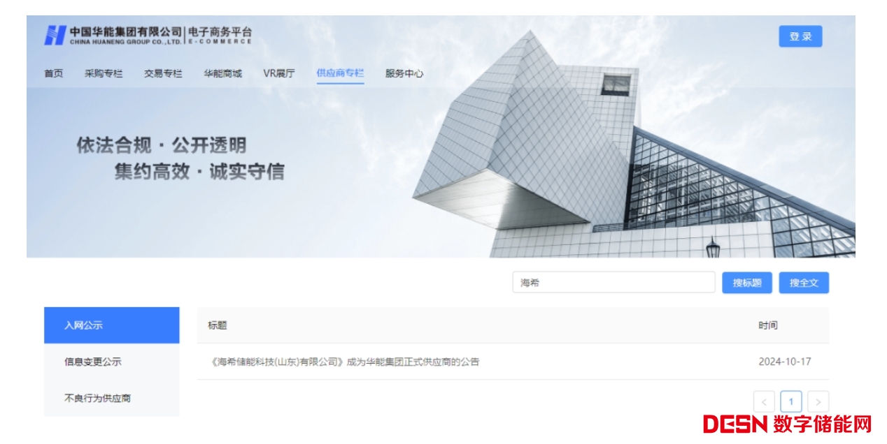 中國儲能網(wǎng)訊:近日,海希儲能科技(山東)有限公司(以下簡稱“海希儲能”)成功加入華能集團旗下華能泰山電力有限公司(以下簡稱“華能泰山電力”)的供應商體系,標志著海希儲能在新能源領域的實力得到了業(yè)內(nèi)領先企業(yè)的認可。