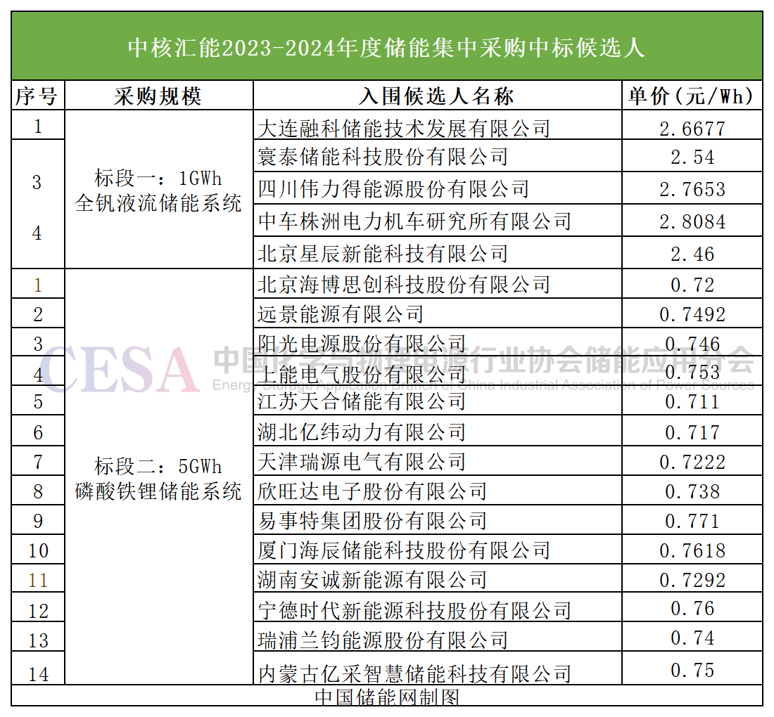 中國儲能網(wǎng)訊:今年規(guī)模最大的央企儲能集采迎來最新進(jìn)展,12月14日,中核集團(tuán)官網(wǎng)公布了中核匯能有限公司2023-2024年度儲能集中采購中標(biāo)候選人。