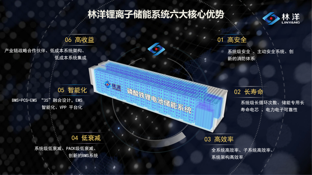 作為專注于“BMS+PCS+EMS”的3S融合系統(tǒng)設(shè)計(jì)的企業(yè),林洋能源堅(jiān)持以先進(jìn)的儲(chǔ)能系統(tǒng)設(shè)計(jì)和創(chuàng)新的儲(chǔ)能系統(tǒng)集成技術(shù),為客戶提供“高安全、長(zhǎng)壽命、高效率、低衰減、智能化、高收益”的儲(chǔ)能系統(tǒng)解決方案,滿足客戶多重需求。目前,林洋能源已同兩網(wǎng)公司、各大發(fā)電集團(tuán)等達(dá)成合作關(guān)系,相關(guān)產(chǎn)能產(chǎn)品已成功應(yīng)用于華電靈武一期123MWh共享儲(chǔ)能電站、中國(guó)城投建設(shè)集團(tuán)湖南寧遠(yuǎn)100MW/200MWh共享儲(chǔ)能電站、以及國(guó)家電投新疆阿圖什100MW/400MWh儲(chǔ)能電站等項(xiàng)目。