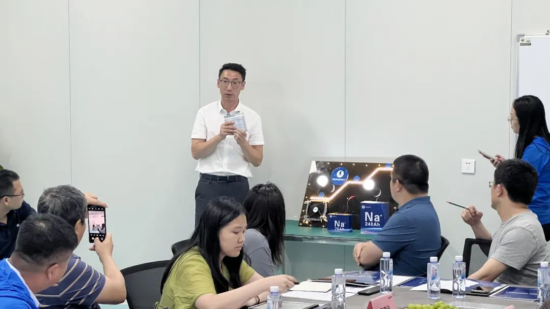 參觀結(jié)束后,雙方進(jìn)行了技術(shù)交流座談,雙方圍繞離網(wǎng)光儲(chǔ)項(xiàng)目應(yīng)用、鈉電技術(shù)和國(guó)內(nèi)外發(fā)展前景、電池回收、產(chǎn)品認(rèn)證、上下游產(chǎn)業(yè)鏈合作等進(jìn)行了熱烈討論和深入交流。劉楊副院長(zhǎng)介紹了公司鈉電研發(fā)進(jìn)展,并現(xiàn)場(chǎng)演示了鈉電池產(chǎn)品的實(shí)物應(yīng)用。