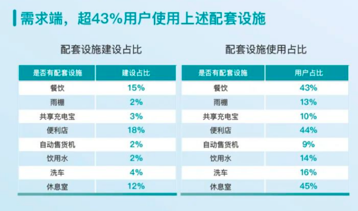 但據(jù)統(tǒng)計,僅15%的充電站配備了餐飲等服務(wù),43%的用戶有餐飲需求,缺口巨大。