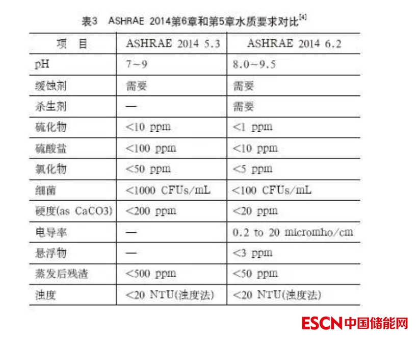 這些冷板和內(nèi)部管道結(jié)構(gòu)對(duì)水質(zhì)更敏感,例如可能會(huì)發(fā)生腐蝕,結(jié)垢和微生物。指南ASHRAE 2014第6章比第5章的要求更嚴(yán)格。表3所示為水質(zhì)要求的對(duì)比。對(duì)于非CDU的液冷系統(tǒng)設(shè)計(jì)時(shí)要參考第6章,而含CDU液冷系統(tǒng)設(shè)計(jì)時(shí)要參考第5章內(nèi)容。如果將機(jī)柜冷卻系統(tǒng)的水質(zhì)要求含CDU的液冷系統(tǒng),會(huì)造成不必要的大量的成本提高。同樣,將設(shè)施水質(zhì)要求應(yīng)用于無(wú)CDU液冷系統(tǒng)時(shí),由于水質(zhì)要求低得多,將會(huì)帶來(lái)巨大風(fēng)險(xiǎn)。在使用時(shí),兩者經(jīng)常被誤用,設(shè)計(jì)時(shí)應(yīng)該著重區(qū)分開(kāi)。