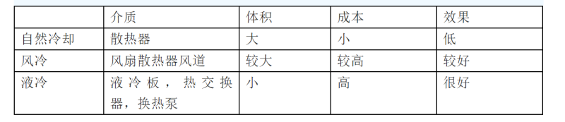 在儲(chǔ)能系統(tǒng)中,目前小功率的系統(tǒng),如充電寶、手機(jī)、手提電腦等,一般采用自然散熱的方式,中功率系統(tǒng),如便攜式電源、戶用儲(chǔ)能系統(tǒng)、UPS,工業(yè)中小型集裝儲(chǔ)能等,一般采用強(qiáng)制風(fēng)冷的方式;電動(dòng)汽車儲(chǔ)能系統(tǒng),一般采用液冷技術(shù)。目前中大型儲(chǔ)能系統(tǒng),也開(kāi)始采用液冷技術(shù)。