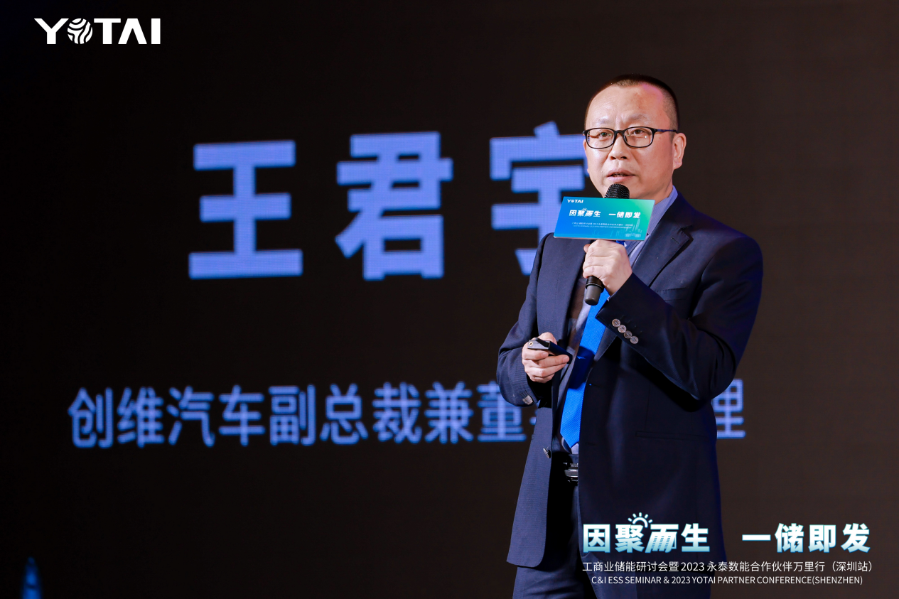 創(chuàng)維汽車副總裁兼董事長(zhǎng)助理王君宇先生就《價(jià)值投資創(chuàng)新驅(qū)動(dòng)》進(jìn)行了主題分享,他表示,新能源產(chǎn)業(yè)賽道是一顆璀璨的明星,其中,光儲(chǔ)充更是迎來(lái)了投資風(fēng)口,他非??春糜捞?shù)能光儲(chǔ)充解決方案,尤其是永泰數(shù)能的光儲(chǔ)充一體化“城市驛站”,他認(rèn)為“城市驛站”不管是在商業(yè)模式上、產(chǎn)品品類上,還是在用戶的生活方式上,都做出了開創(chuàng)性的創(chuàng)新與變革,遙遙領(lǐng)先于行業(yè),創(chuàng)維愿與永泰數(shù)能強(qiáng)強(qiáng)聯(lián)手,共贏未來(lái)。