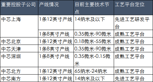 截至2019年中芯國際各產(chǎn)線情況