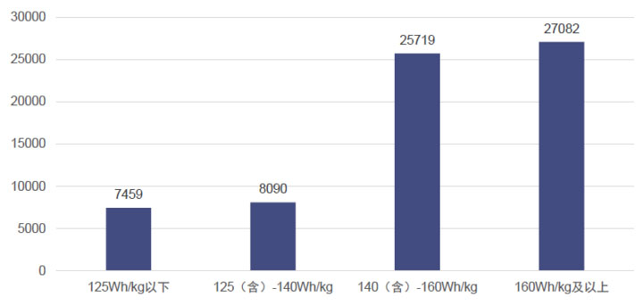 (純電動乘用車池系統(tǒng)能量密度分布情況(輛))
