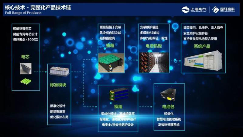在儲能產業(yè)領域,上海電氣國軒重點布局儲能電芯和儲能系統(tǒng)集成兩大核心技術板塊,持續(xù)投入研發(fā),完成從電芯到儲能系統(tǒng)的完整化產品技術鏈,目前已在儲能各個環(huán)節(jié)實現(xiàn)成功案例。