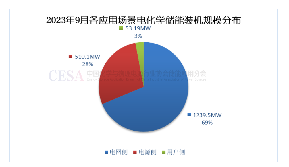 圖2-2 2023年9月各應(yīng)用場景電化學儲能裝機規(guī)模分布圖