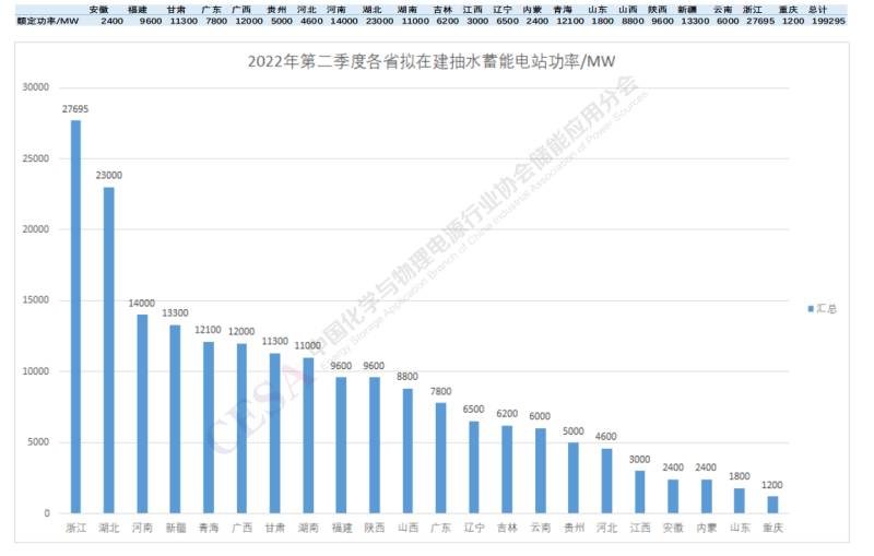 圖8 2022Q2各省份擬在建抽水蓄能電站裝機功率分布