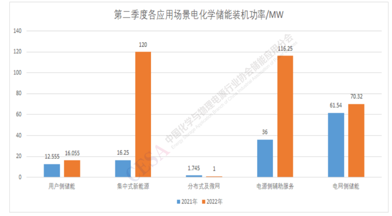 圖2 2021Q2-2022Q2電化學(xué)儲能各應(yīng)用場景裝機功率對比