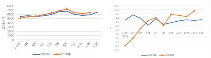 圖1 2019、2020年分月全社會(huì)用電量及其增速