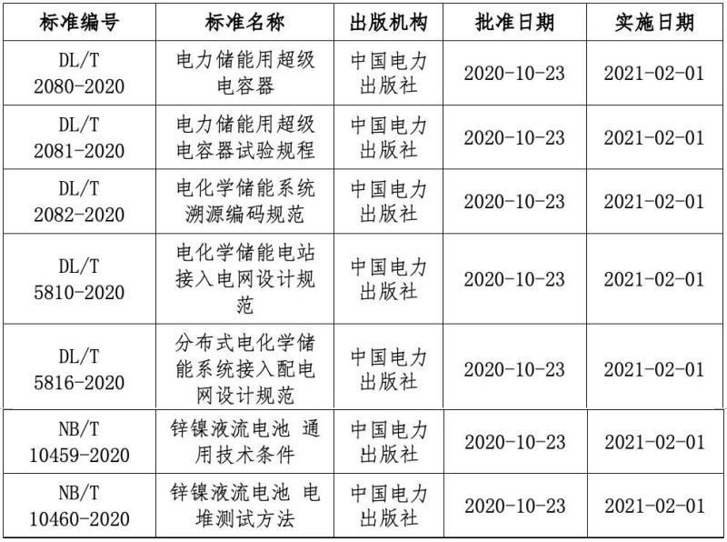 中國儲能網(wǎng)訊:11月27日,國家能源局發(fā)布2020年第5號公告,批準了502項能源行業(yè)標準,其中儲能部分包含電力儲能用超級電容器、電化學(xué)儲能系統(tǒng)溯源編碼規(guī)范、電化學(xué)儲能電站接入電網(wǎng)設(shè)計規(guī)范、分布式電化學(xué)儲能系統(tǒng)接入配電網(wǎng)設(shè)計規(guī)范等7項標準。新標準將于2021年2月1日開始實施。