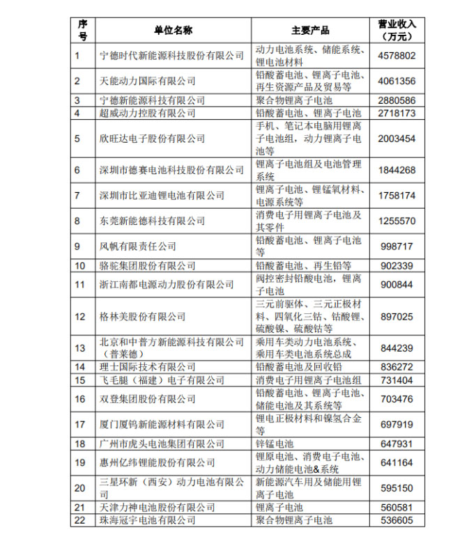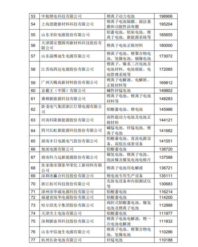 2019年中國電池行業(yè)百強企業(yè)排名