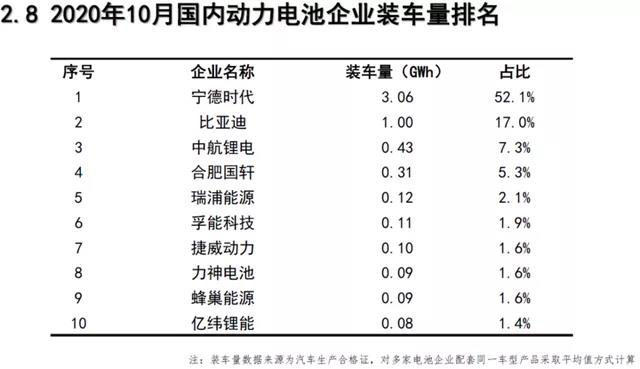 企業(yè)方面,2020年10月,我國新能源汽車市場共計38家動力電池企業(yè)實現(xiàn)裝車配套。排名前3家、前5家、前10家動力電池企業(yè)動力電池裝車量分別為4.5GWh、4.9GWh和5.4GWh,占總裝車量比分別為76.5%、83.9%和92%。