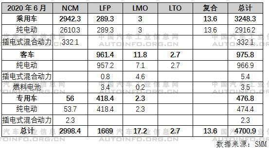 從動力電池類型來看,三元電池裝車量3GWh,占比63.8%,磷酸鐵鋰電池裝車量1.7GWh,占比35.5%。從裝機車型來看,新能源乘用車主要搭載三元NCM電池,新能源商用車主要搭載磷酸鐵鋰電池。但是,6月磷酸鐵鋰電池配套乘用車比例從4%提高到9%。