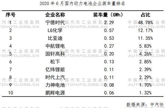 6月,我國新能源汽車市場共計48家動力電池企業(yè)實現(xiàn)裝車配套。TOP10企業(yè)基本沒有變化,尤其前5名的排序穩(wěn)定。