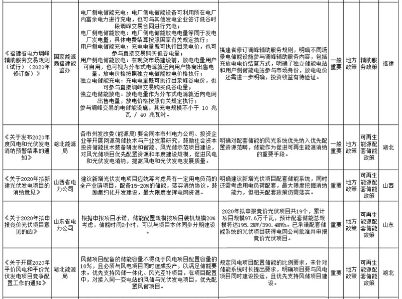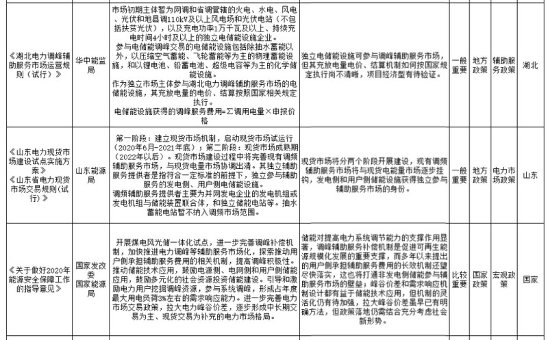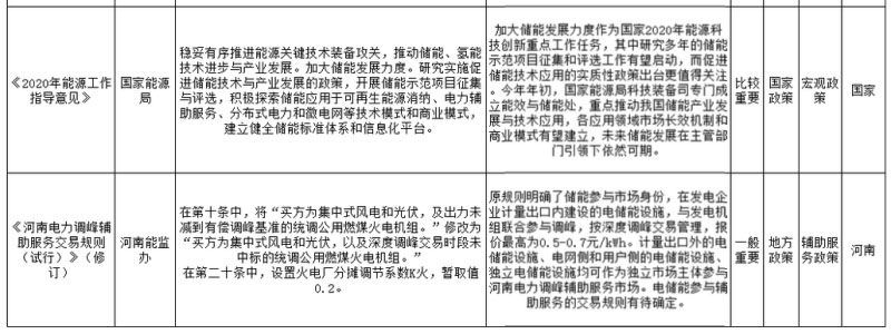 本月,國家層面先后印發(fā)《關(guān)于做好2020年能源安全保障工作的指導(dǎo)意見》和《2020年能源工作指導(dǎo)意見》,作為指導(dǎo)2020年能源工作方向的政策文件,再次提出輔助服務(wù)市場長效機制建設(shè)路線,即探索推動用戶側(cè)承擔(dān)輔助服務(wù)費用的相關(guān)機制,這也將是破解眾多電力發(fā)展難題的關(guān)鍵,而不同應(yīng)用領(lǐng)域和投資主體擁有的儲能系統(tǒng)必將得益于電力市場長效機制的建立,身份定位和補償支付也將趨于合理化。同時,國家層面已研究落實峰谷價差執(zhí)行政策,但在現(xiàn)有大環(huán)境下,實質(zhì)性政策落地仍需時日。在市場化改革深入推進過程中,已開展多年的需求響應(yīng)工作還有必要得到深化設(shè)計,其調(diào)用規(guī)則和基準(zhǔn)線設(shè)計等不能再停留在初級階段,要更加適應(yīng)現(xiàn)有電力系統(tǒng)的發(fā)展,同時其背后的長效機制,即過渡階段的付費問題和長遠(yuǎn)階段的靈活價格機制同樣需要突破。除資金來源差異外,現(xiàn)有需求響應(yīng)和用戶調(diào)峰輔助服務(wù)存在重疊,但規(guī)則設(shè)計卻不在同一維度。2020年,已研究多年的儲能示范項目征集工作有望啟動,至此產(chǎn)業(yè)內(nèi)主體已不關(guān)注示范項目的資金補貼問題,更希望能夠自上而下引領(lǐng)行業(yè)發(fā)展進步,落實配套政策并支持儲能的商業(yè)化應(yīng)用。