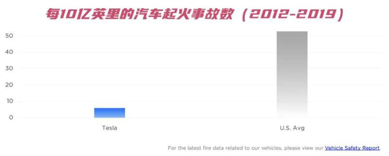 由于公眾的誤解,特斯拉決定開(kāi)始每年公布車輛火災(zāi)數(shù)據(jù)。從2012年到2019年,特斯拉每行駛1.75億英里發(fā)生一次起火事故。相比之下,美國(guó)國(guó)家消防協(xié)會(huì)(NFPA)和美國(guó)交通部的數(shù)據(jù)顯示,在美國(guó),每行駛1900萬(wàn)英里就會(huì)發(fā)生一次燃油車起火。