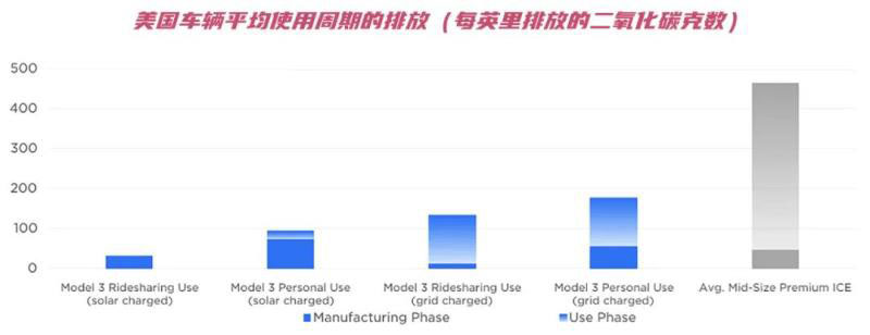 2.特斯拉電動(dòng)汽車使用周期排放遠(yuǎn)低于車型平均水平