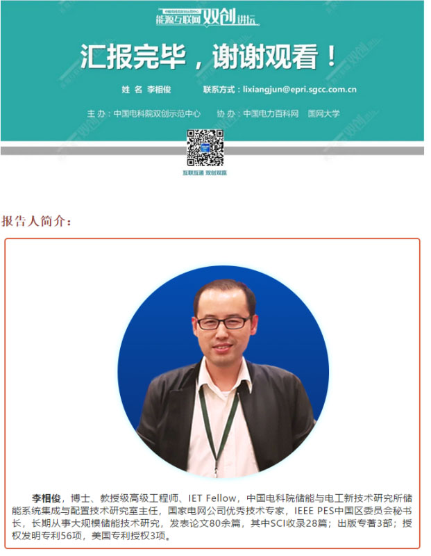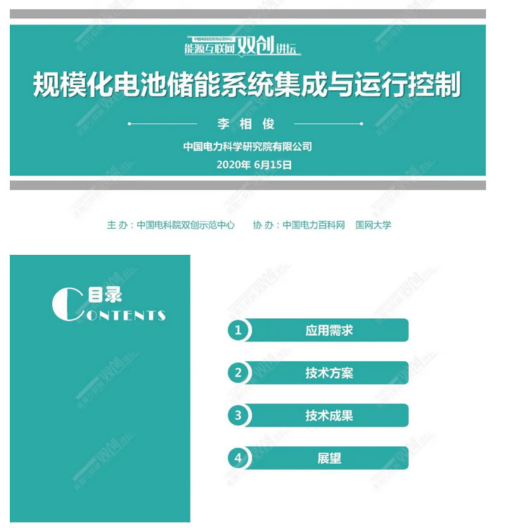 2020年6月15日,在中國電科院雙創(chuàng)示范中心主辦的能源互聯網雙創(chuàng)講壇上,國家電網公司優(yōu)秀技術專家李相俊博士主講《規(guī)模化電池儲能系統集成與運行控制》,經專家本人授權,與大家分享。