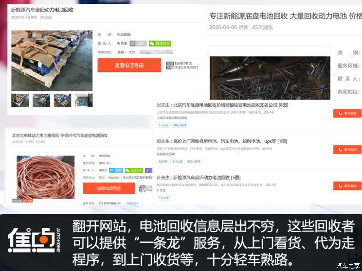 “高價回收汽車電池、底盤”、“大量回收大單體電池模組”、“專注新能源廢舊電池回收”……翻開某網(wǎng)站,一連串信息撲面而來,這只是網(wǎng)上電池回收的冰山一角。2020年是動力電池回收市場爆發(fā)年,初步預測約有20萬噸電池亟待回收。然而,這背后卻橫亙著一條灰色產業(yè)鏈,讓大量退役動力電池不知所蹤。