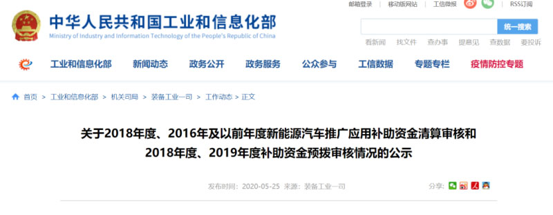 按照財(cái)政部、工業(yè)和信息化部、科技部、發(fā)展改革委《關(guān)于2016-2020年新能源汽車推廣應(yīng)用財(cái)政支持政策的通知》(財(cái)建〔2015〕134號(hào))、《關(guān)于2015年度新能源汽車推廣應(yīng)用補(bǔ)助資金清算工作的補(bǔ)充通知》(財(cái)辦建〔2016〕115號(hào))、《關(guān)于調(diào)整新能源汽車推廣應(yīng)用財(cái)政補(bǔ)貼政策的通知》(財(cái)建〔2016〕958號(hào))、《關(guān)于調(diào)整完善新能源汽車推廣應(yīng)用財(cái)政補(bǔ)貼政策的通知》(財(cái)建〔2018〕18號(hào))、《關(guān)于開展2018及以前年度新能源汽車推廣應(yīng)用補(bǔ)助資金清算的通知》(財(cái)辦建〔2019〕87號(hào))和《關(guān)于進(jìn)一步完善新能源汽車推廣應(yīng)用財(cái)政補(bǔ)貼政策的通知》(財(cái)建〔2019〕138號(hào))等文件要求,工業(yè)和信息化部裝備工業(yè)一司委托工業(yè)和信息化部通信清算中心,開展了2018年度、2016年及以前年度新能源汽車推廣應(yīng)用補(bǔ)助資金清算審核和2018年度、2019年度補(bǔ)助資金預(yù)撥審核工作。