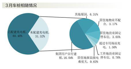 截至2020年3月,通過充電聯(lián)盟成員內(nèi)整車企業(yè)采樣約105.9萬輛車的車樁相隨信息,發(fā)現(xiàn)建設(shè)安裝私人充電樁的有66.6萬輛,占68.48%;未配建私人樁的有33.4萬輛,占31.52%。從未配建私人充電樁的原因看,除了集團(tuán)用戶自行建樁占較高比例外,居住地物業(yè)不配合和居住地沒有固定停車位也是重要原因,這三個因素占比達(dá)70.6%,其余原因占比為29.4%。