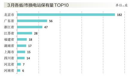 截止到2020年3月,我國共有換電站433座。其中,北京是換電站最多的地區(qū),共有182座,占總量的42.03%。此外,廣東有56座,浙江有47座,江蘇有28座,福建、湖南、上海、四川的換電站保有量在10座以上,還有約10個地區(qū)沒有建設(shè)換電站。從換電站運(yùn)營商看,數(shù)量只有3家,分別是奧動新能源、蔚來和杭州伯坦,分別有216座、123座和94座。