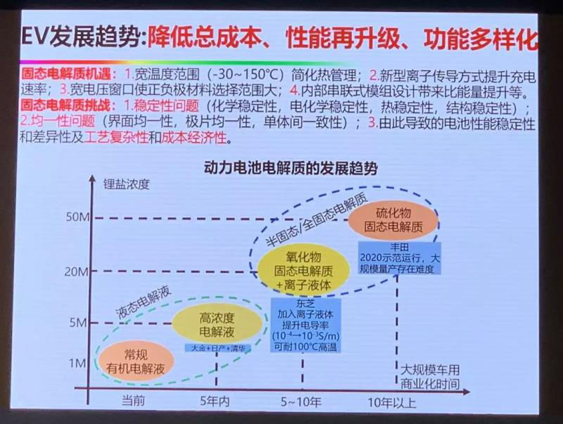下一步,性能再升級兩個方面:第一個,新一代電力電子,會使下面電驅(qū)動一體化,然后扁平化的汽車底盤,電動車只要打開基本上空的,如果是混合動力全都是滿的,下一步還會繼續(xù)空下去。第二個,還會有性能再升級,當(dāng)然就是電解質(zhì)的技術(shù)進(jìn)步。