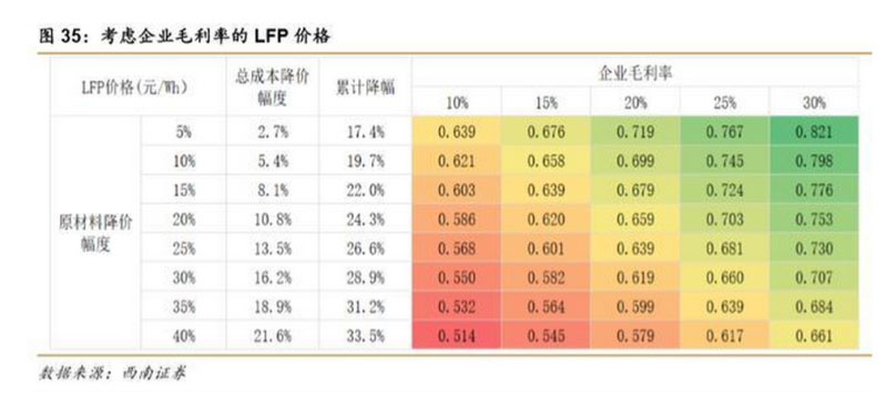 則 LFP 制造總成本可以從 0.696 元/Wh 下降至 24.3%至 0.527 元/Wh。
