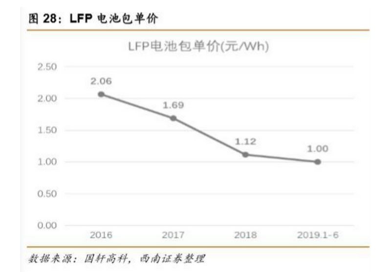根據(jù) 2019 年 9 月 17 日國軒高科發(fā)布的《關于請做好國軒高科公開發(fā)行可轉債發(fā)審委會 議準備工作的函》的回復中的內(nèi)容,國軒高科 2016-2019 年上半年磷酸鐵鋰電池的單價分別 為 2.06 元/Wh,1.69 元/Wh,1.12 元/Wh,1.00 元/Wh,對應的毛利率分別為 48.7%,39.8%, 28.8%和 30.4%。