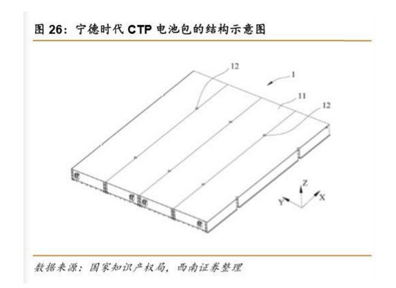 寧德時代的 CTP 技術,提供了一種電池包,在滿足電池包輕量化的同時,提高電池包 在整車的連接強度。其優(yōu)勢主要有兩點:1)CTP 電池包因為沒有標準模組限制,可以用在 不同車型上,使用廣泛。2),減少內(nèi)部結構組建,CTP 電池包能提高體積利用率,系統(tǒng)能量 密度也間接提升,其散熱效果要高于目前小模組電池包。