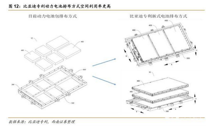 隨著用戶對電動車的續(xù)航能力的要求逐漸提升,而在車身底部空間有限的情況下,采用 刀片電池包,一方面可以提高動力電池包的空間利用率、增加能量密度,另一方面能夠保證 單體電池具有足夠大的散熱面積,可將內(nèi)部的熱量傳導至外部,從而匹配較高的能量密度。